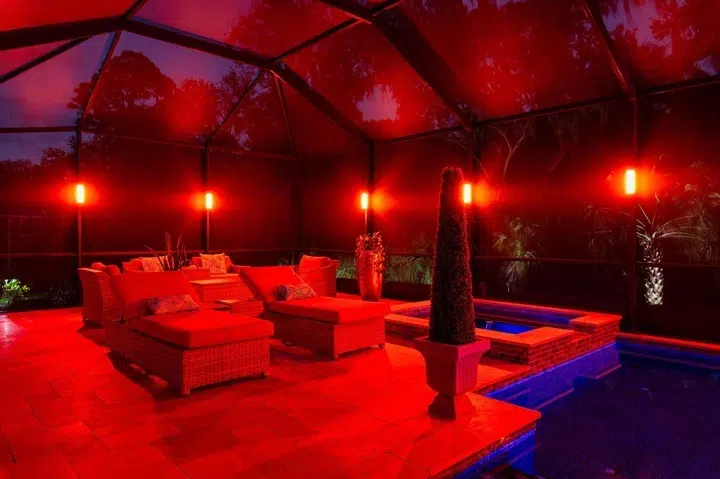 Our pool cage lighting systems instantly change from vibrant colors, to functional white lighting, candlelight, or soft pastel tones. Adjust the brightness or dimming of our Sunset Sconce™ lanai lights for the perfect for the lighting to entertain, or just create a relaxing getaway for yourself!